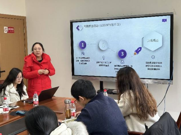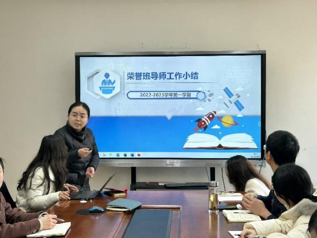 会上,荣誉班导师们分享了上一学期开展的一系列工作。大家通过线上、线下相结合的方式,把握学生年级和专业特征,以学业和科创为核心,围绕思想引领、学业指导、科研助力、生涯规划、心理关怀五个方面,全方位助力学生成长。一个学期以来,荣誉班导师的工作卓有成效,所带班级的凝聚力得以增强;学生的学业水平得以提高,其中,数位学业困难同学在荣誉班导师的帮助下期末考试成绩较前一学期有了大幅度的提升。学生对科学研究产生了更加全面的认识,科创意识增强,在荣誉班导师的指导下,学生积极进行科创项目申报,参加相关科创竞赛并获奖。在交流中,大家还总结了在工作中遇到的问题和不足之处,并对接下来的工作进行了规划。