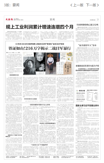 文汇报:33年间300多次田野调查,四卷本《日军“慰安妇”全史》在沪首发 铁证如山!216万字揭示二战日军暴行
