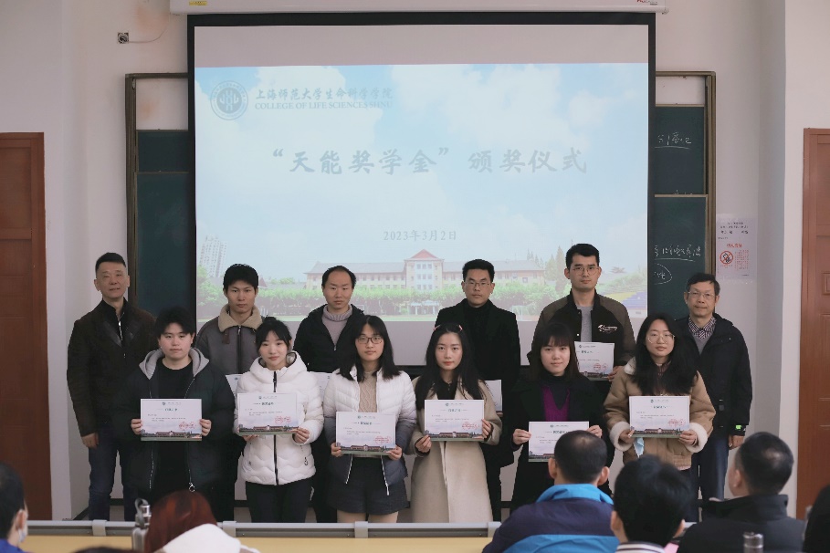 上海师范大学生命科学学院“天能奖学金”由上海天能科技有限公司捐资成立,分设“卓越创新班奖学金”“科创奖学金”和“优良学风奖学金”,用于奖励在科研、竞赛、学习等方面取得突出成绩的学生个人、团队和集体,激励学生努力学习、奋发向上、立志成才,提高学生的创新和实践能力。
