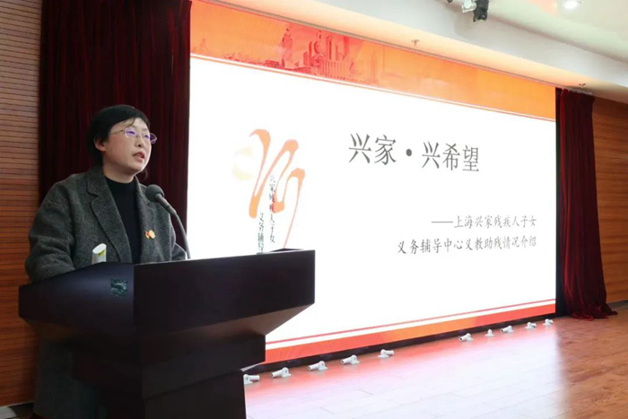 上海兴家残疾人子女义务辅导中心创始人之一、上海教育报刊总社《成才与就业》杂志首席编辑刘闻亮在仪式上介绍了开展志愿服务的情况。据介绍,兴家残疾人子女义务辅导学校成立于1999年12月26日,2008年更名为兴家残疾人子女义务辅导中心,是一所助残疾人子女成才的、提供无偿服务的学校。“兴家”成立之初,仅有复旦大学中文系和高分子系的34位同学,经过一棒棒接力,如今已有21所大学累计3万余名大学生志愿者向残疾人家庭提供了30余万次无偿家教;有60余位教师志愿者为残疾人子女提供无偿辅导达5千余课时。
