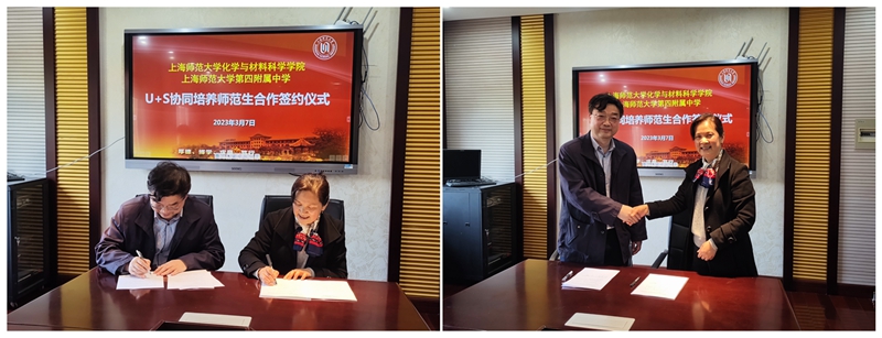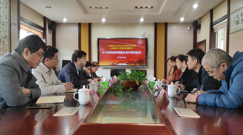 3月7日上午,我校化学与材料科学学院院长杨仕平,副书记、副院长张皓月,副院长郎万中,课程与教学论专业学科带头人杨红一行,赴上海师范大学第四附属中学,与校党总支常务副书记李宇靖、校长周秀丽洽谈院校合作事宜。双方签订U+S协同培养师范生合作协议,全力建设师范生和中学教师培养、培训、研究和服务一体化的合作共同体。