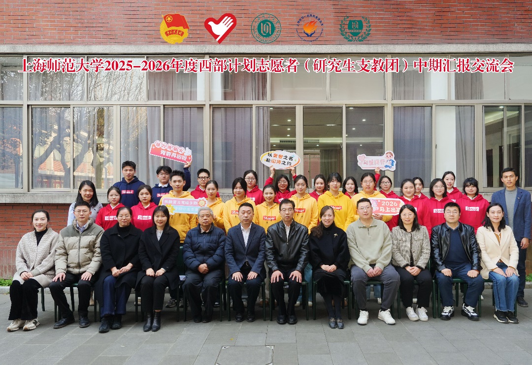 1月15日下午,我校2025-2026年度西部计划志愿者(研究生支教团)中期汇报交流会在线上线下同步举行。校党委副书记、副校长朱惠军,校党委常委、总会计师曹光明,上海韩哲一教育扶贫基金会秘书长韩烽火,学校办公室副主任、教育发展基金会秘书长陈燕,校团委书记黄雨艳,上海韩哲一教育扶贫基金会秘书长助理李敏,校基金会和团委相关老师以及第27、28届研究生支教团全体成员、2025-2026年度西部计划志愿者出席本次交流会。