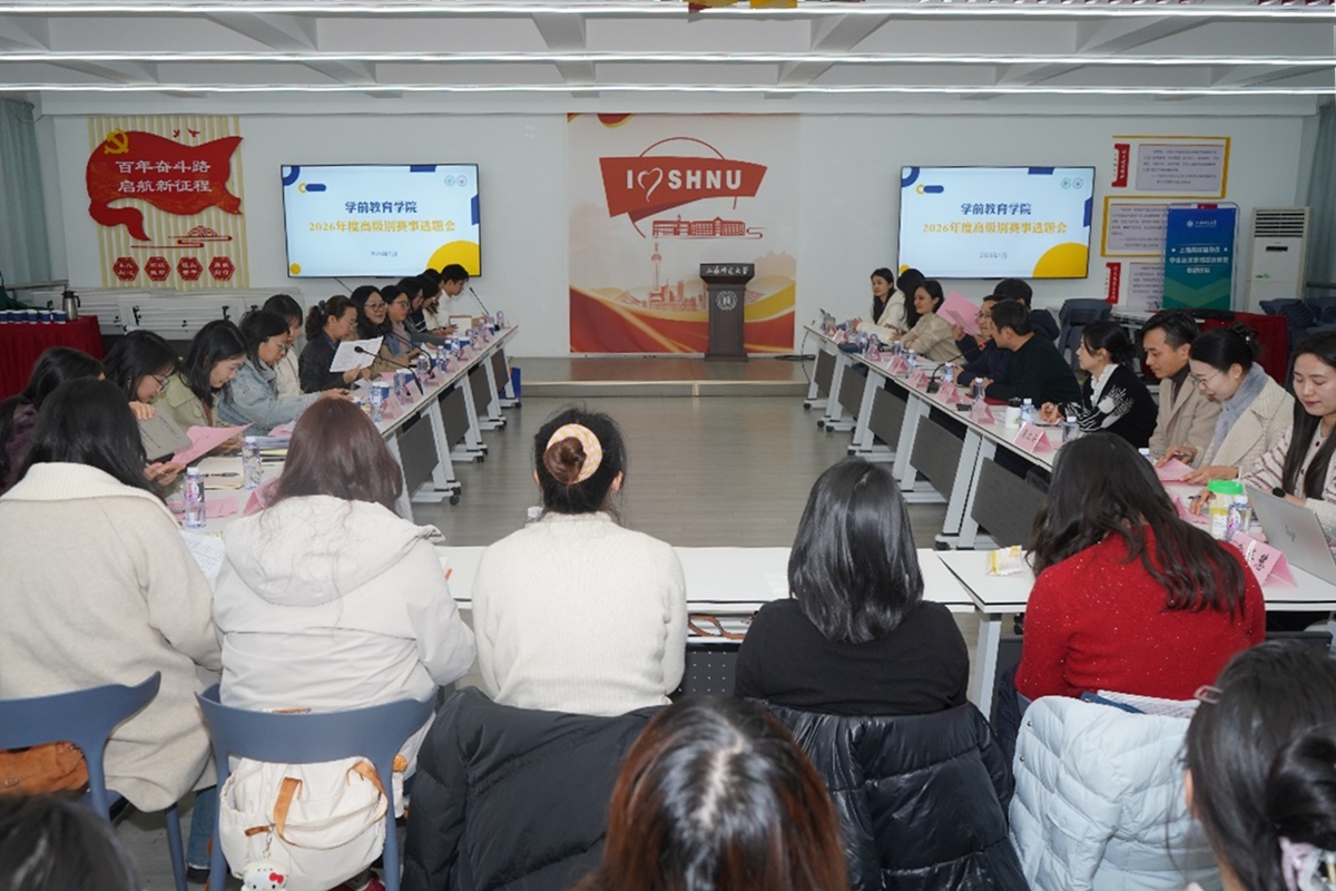 为更好地培育2026年度高级别学生竞赛项目,切实提升学院科创项目质量,1月14日下午,学前教育学院2026年度高级别学生赛事选题会于徐汇校区东二党建活动中心举行。校团委书记黄雨艳,校创新创业学院专职副院长戴宁宁,校团委副书记毕冉、社会实践中心主任郝思嘉,上海市盲童学校党支部书记张杨莉、副校长周芳、教育发展中心副主任吉沁、学前教研组组长高勤,学前教育学院党委书记杨成龙,党委副书记、副院长周泽龙及学院专业教师代表、辅导员代表及学生项目负责人共同参与。会议由周泽龙主持。