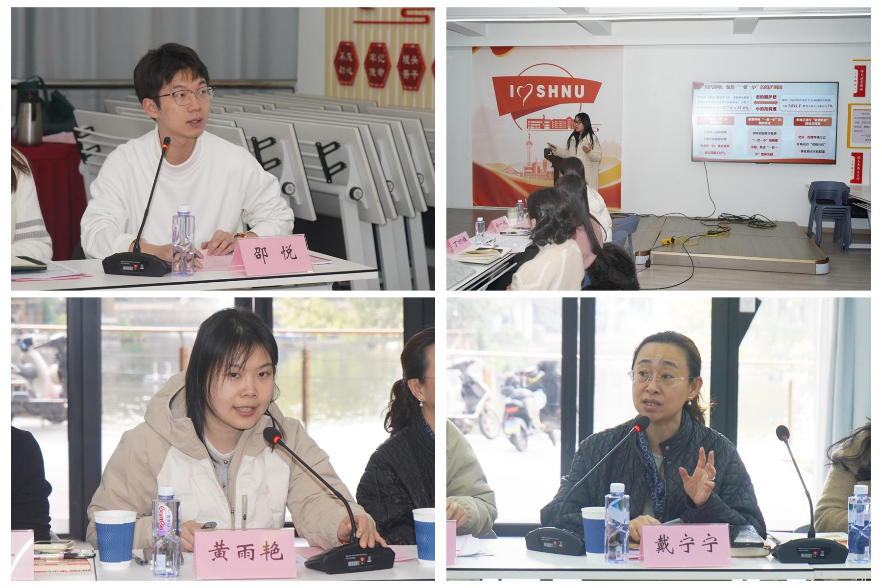 随后,“老幼共托调研团”项目负责人张艺潇进行现场展示,生动呈现出学前学子围绕“一老一小”议题所开展的社会调研与实践探索。