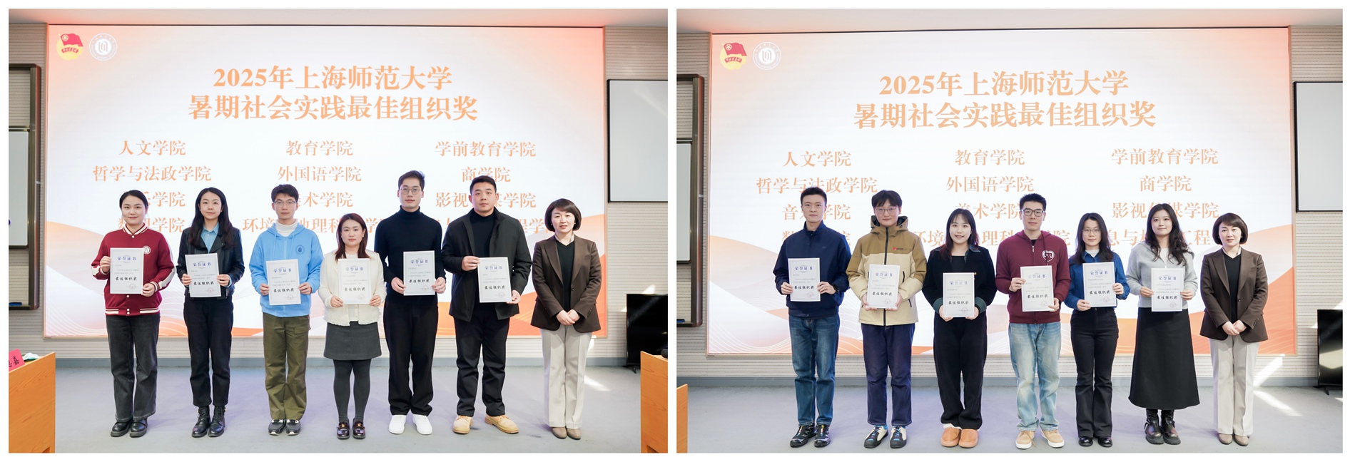 2025年,在社会实践和志愿服务中,志愿者们初心不改,实干不辍,用实际行动诠释“奉献、友爱、互助、进步”的志愿精神,起到了模范带头作用。活动现场表彰了暑期社会实践最佳组织奖、优秀指导教师、优秀个人以及第八届进博会优秀志愿者代表。