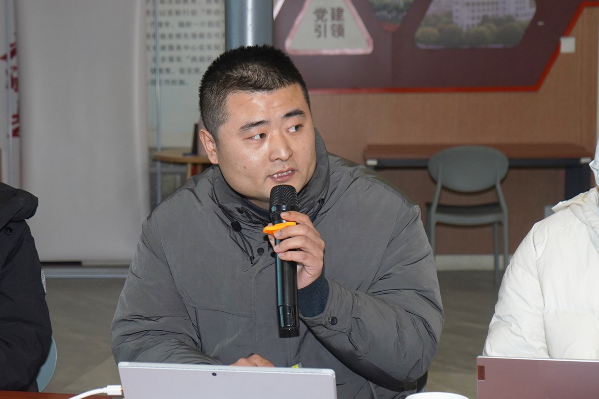 会上,学院第三批学生样板党支部——学生生活园区第144党支部书记何坤鹏汇报了创建工作的进展,党支部始终紧扣“立德树人”与“就业引领”,着力构建就业信息网,开展学业帮扶与职业训练。此外,支部党员还深度参与学校园区管理与安全建设,在科研、竞赛、志愿服务中发挥先锋模范作用,较好展示了样板党支部创建成效。