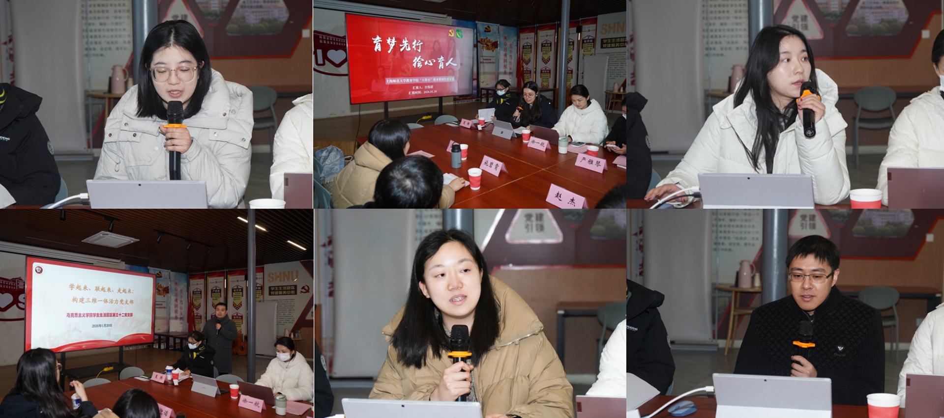 人文学院学生生活园区第5党支部副书记沙妍、教育学院“大带小”绘本带读社党支部书记汪倪诺、哲学与法政学院模拟政协学生社团党支部书记窦美霖、马克思主义学院学生生活园区第32党支部书记卞浩宇、对外汉语学院汉语国际教育本科生第二党支部书记施碧霄、环境与地理科学学院学生生活园区第123党支部书记赵杰等六位同志先后作分享交流。他们结合各自支部的学科特色,围绕如何将党建工作深度融入专业学习、社会实践与社团活动,如何有效提升支部组织力、凝聚力与战斗力,如何打造具有辨识度和影响力的党建品牌等主题,分享了宝贵经验。
