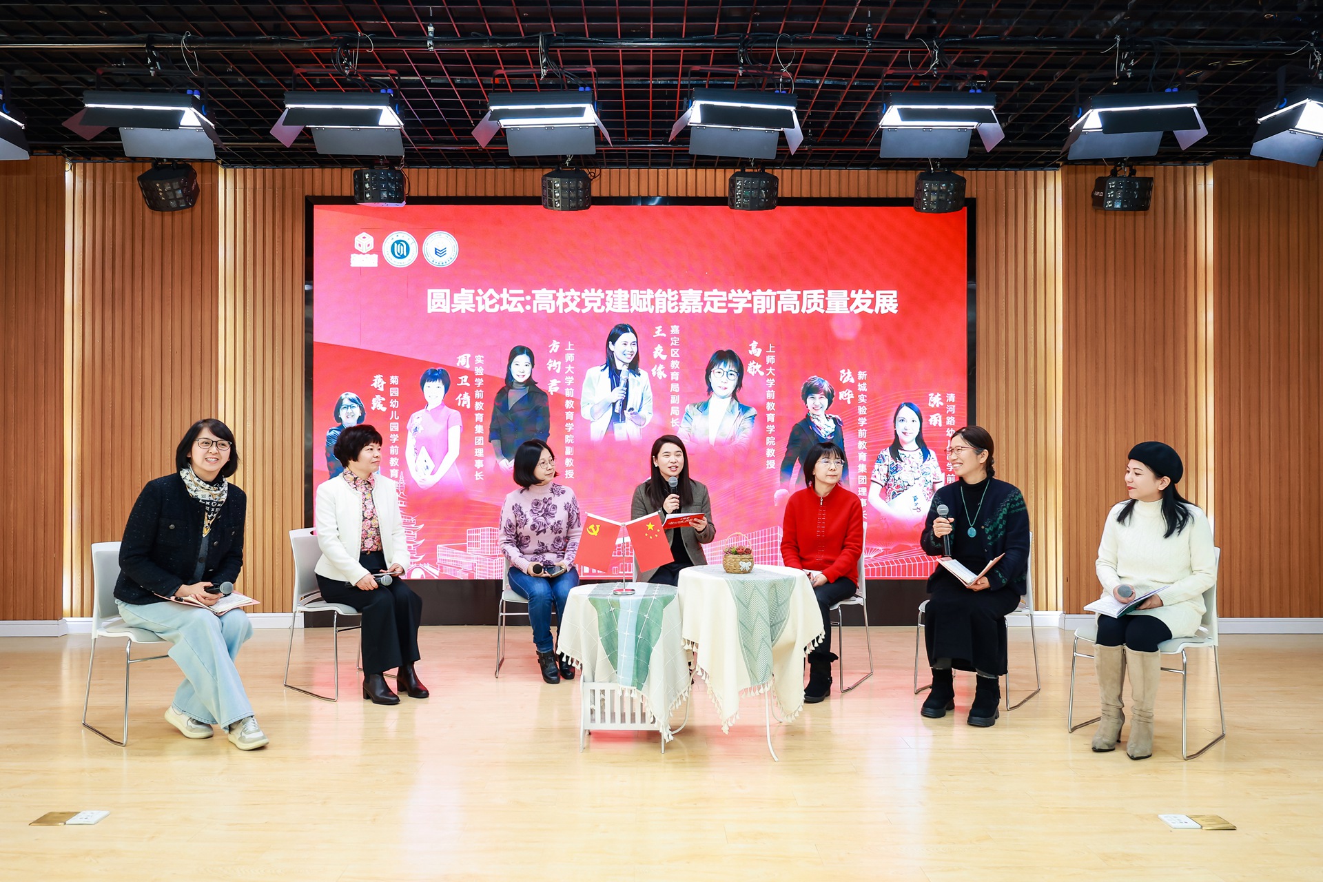 王友缘主持圆桌论坛,学院教师代表高敬、方钧君,嘉定学前教育集团理事长代表周卫倩、陆晔、陈丽、蒋霞,围绕嘉定学前教育各集团发展中的关键瓶颈问题,如场域转型带来的融合挑战、教师专业能力系统提升、支撑系统的进一步完善等进行深度对话。学院教师纷纷表示,将充分发挥高校在理论建构、科研方法、专业引领等方面的优势,通过专家入园、陪伴式指导、联合教研、课题共研等方式,协助园所破解实践难题。