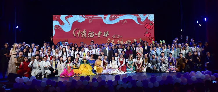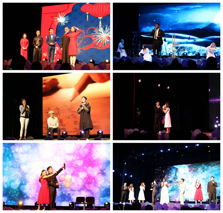 异国异地异乡情,同声同语贺新春,师生同台展风采,中外学生秀才艺。来自不同国家、不同民族的学生们载歌载舞、倾情演绎,为台下观众献上了一台精彩绝伦、异彩纷呈的新年晚会。展望2020,学院将继续砥砺前行,推进面向国际化教育的时代步伐。