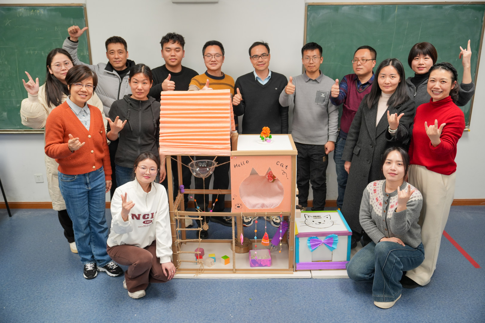 在江西阶段,培训聚焦理念更新与思维转型。上海师范大学耿步健教授作“奋楫扬帆启新程——学习领会党的二十届四中全会精神”专题报告;上海师范大学国际教师教育中心副主任王洁教授以“科技教育在学科实践中的可为与何为——从‘跨学科拼盘’到‘边界跨越’”为题,引导学员深入思考科技教育在学科教学中的融合路径。上海师范大学建筑工程学院的罗晶博士、朱美春教授、王英副教授分别围绕“从共情到落地:设计思维与工程思维”“从蓝图到原型:材料与技术的协奏”“从工程实践到教学设计:K12工程教育教学链”等主题开展专题讲座,为项目实践提供方法论支撑。学员们就“贯木拱桥”“智能喵屋”“未来城市”“风力发电塔”四大项目化学习课题,在导师指导下进行方案设计与初步实践,为后续深度制作奠定基础。