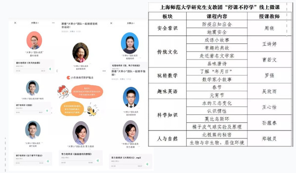 当前正处于抗击疫情的关键时刻,全国发布了延迟开学的通知。上海师范大学党员教师为“宅家儿童”送上别样精神食粮,精心挑选绘本故事,制作一期又一期的视频和音频,陪伴因疫情无法出门的孩子们,义务为孩子和家长们提供,更为精准的阅读教育服务。在教育部门“停课不停学”的号召下,学校研究生支教团广西分队在田阳团县委的指导下,精心策划了“安全常识、传统文化、玩转数学、趣味英语、科学常识、人与自然”等在线趣味微课。