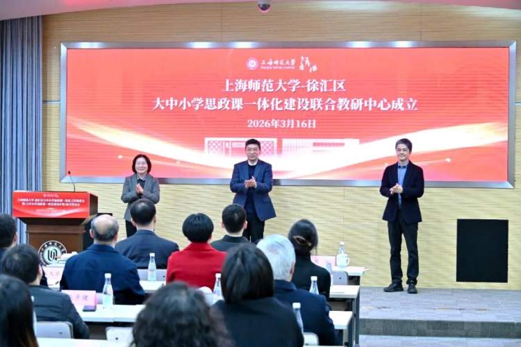 中心将围绕实体化构建、常态化运行和品牌化打造三个方面重点建设。一是实体化构建。实行院地联合主任负责制,组建以高校教授、基础教育研究专家、中小学思政课教师为主体的人才队伍,开展跨学段协同教研、师资研修、成果培育等工作。二是常态化运行,每月开展有主题的教研活动,计划在三年内实现对徐汇区中小学思政课教师的全覆盖。三是品牌化打造,产出一批高质量一体化教研成果,培育复合型思政课骨干教师,打造市校协同思政教研新模式。 会上发布了2026年上海师范大学-徐汇区大中小学思政课一体化工作清单,明确了10项重点任务:一是共同开发“中国式现代化”五大主题思政金课;二是联合编制并动态修订《徐汇区大中小学思政课一体化教学指导意见》,立标定向教学目标衔接要求;三是馆校合作建立标准化工具,规范课程开发;四是打造15分钟实践圈,重点打造上海师大学区实践圈品牌;五是创设文脉+思政场景,打通文化资源与教育资源;六是跨段教研接力,打通相邻学段教学壁垒;七是持续开展“先锋班”骨干培育,着力培养各学段50名骨干教师;八是打造联合教研中心,形成高校专家+教研员+一线名师人才队伍;九是“汇地图”优化升级,构建基于思政素养的五育融合实践平台;十是打造资源联动平台,融合校家社企,全方位赋能思政育人。 本次会上还发布了《大中小学思政课一体化建设年鉴》。《年鉴》紧密结合新时代思政课教育的相关实践,通过梳理学界代表性成果,完整呈现了大中小学思政课一体化建设的实践图景,全面、客观地反映了大中小学思政课一体化建设发展历程,有力助力构建循序渐进、螺旋上升的思政教育体系,为推进大中小学思政课一体化建设提供了重要的理论支撑。 据悉,近年来,上海师范大学与徐汇区携手共建上海市首批“大思政课”建设整体试验区,积极探索“课程共建、资源共享、基地共育、师资共培、平台共创”的机制创新,联合构建校地协同的工作机制,携手推动思政课学段衔接、内容贯通,共享优质资源,共建实践教学基地,实施“强师计划”,开展大中小学“同上一堂思政课”等,扎实推进立德树人机制综合改革试点。