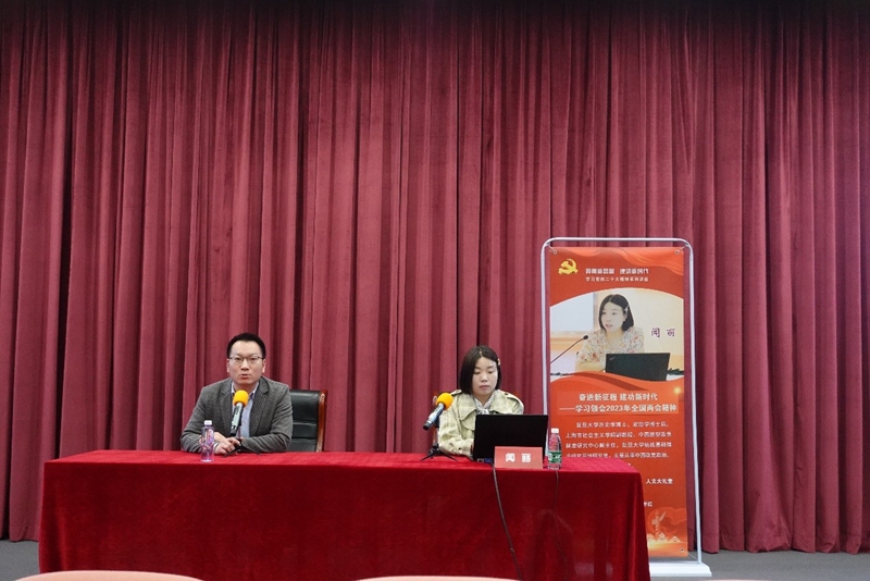 为深入学习贯彻习近平总书记在全国两会期间重要讲话精神和全国两会精神,进一步统一思想,提高认识,3月29日下午,人文学院党委邀请上海市社会主义学院副教授、中国新型政党制度研究中心副主任闻丽为全体教职工作题为《奋进新征程 建功新时代——学习领会2023年全国两会精神》的辅导报告。报告会由人文学院党委书记潘黎勇主持。