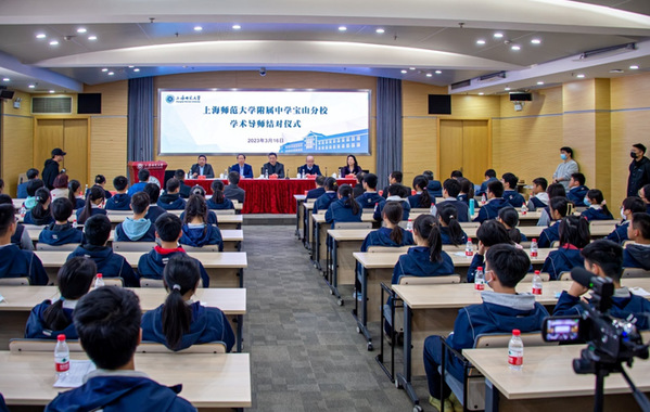 3月16日,上海师范大学附属中学宝山分校全校80多名高一学生走进上海师范大学,与21位博士生导师面对面交流。