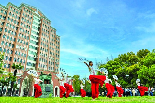 学生们用古典韵味的舞蹈艺术展现校园书香。