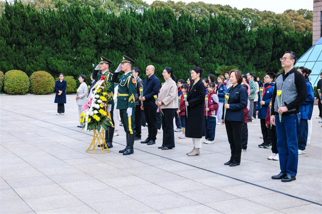 上海对外经贸大学和上海对外经贸大学附属松江实验学校的师生们首先来到无名烈士墓前举行庄严的祭奠仪式。大家肃立致敬,高唱国歌,向无名烈士敬献花篮、鞠躬,向革命先烈深情致敬。
