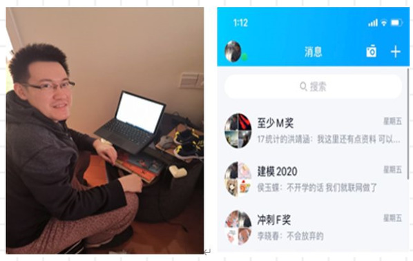 与其他老师开视频会议、上线视频课程不同,指导团队成员刘暐老师的情况有些特殊。家在安徽农村的刘老师,寒假时带着妻子和三岁的儿子回老家过年。由于周边疫情,刘老师只能在家隔离。临近第一阶段比赛,同学们问题多,农村的家里又没网,为了顺利指导自己带的4组同学,刘老师用手机4G给笔记本电脑开热点,不能视频,就在QQ群里打字跟同学们交流。距离远、网速慢,各种不利情况都对老师和同学的交流有影响,但这丝毫没有降低刘暐老师和同学们的热情。