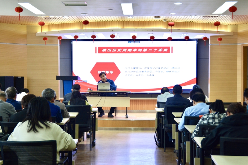 为深入学习贯彻党的二十大精神,加强学院教职工对于党的二十大报告的理解,4月19日下午,哲学与法政学院特邀上海师范大学马克思主义学院教授、博士生导师刘林开展了主题为《认识和理解中国式现代化道路》的专题讲座,讲座于文科实验楼502室进行,由学院党委书记贺朝霞主持,学院全体教职工参会学习。