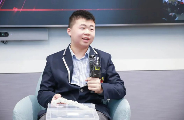 上海市实验学校的钱宇轩说:“做科创是一件很快乐的事,我从中学到了很多,这个过程也成为了我成长的助推器。”