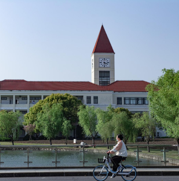不同于徐汇校区的优雅古朴,奉贤校区自带海湾的浪漫气质,骑行25分钟,便能到达碧海金沙看日出日落。虽然海湾镇风大雨大,但晴朗时毫无高大建筑遮挡的蓝天,足以治愈人心。