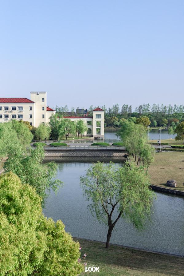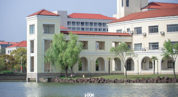 奉贤校区的建筑总与湖水相衬入画