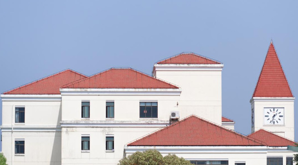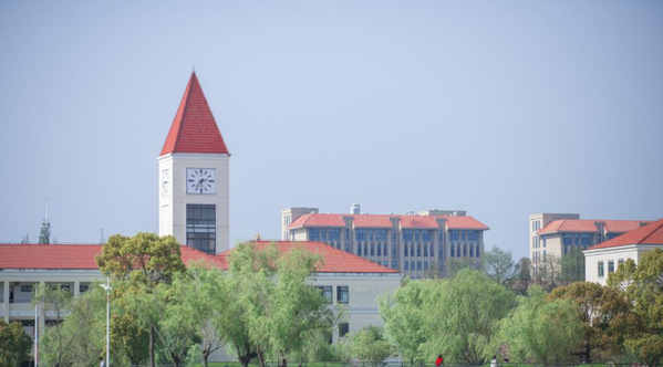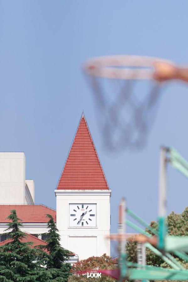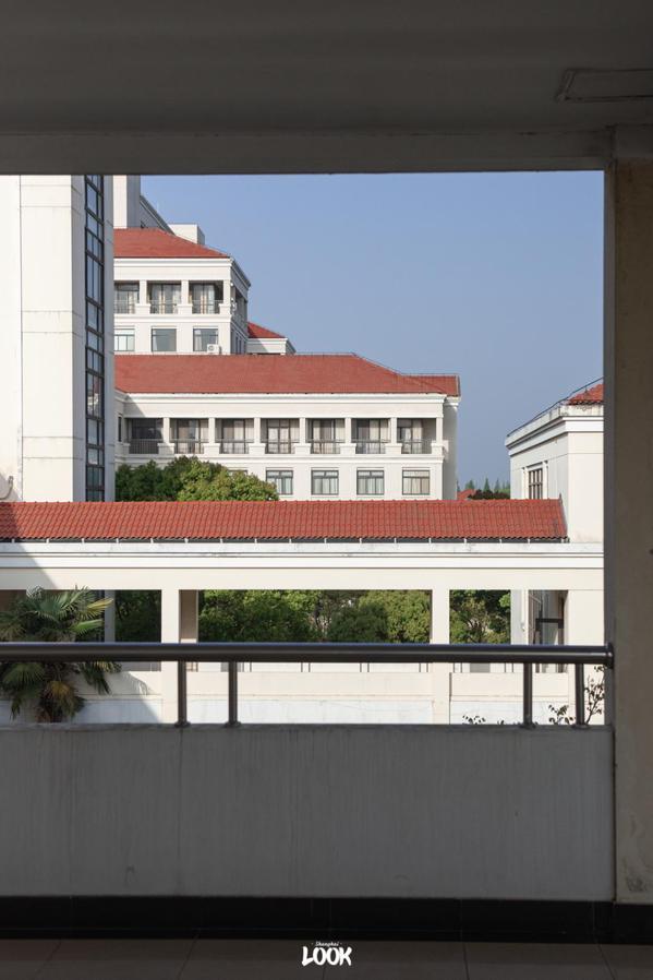 四教、五教、图书馆和办公楼,组成了奉贤校区高低错落的「小红帽」建筑群。