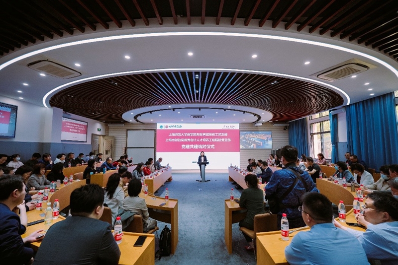 党课结束后,商学院财务管理系教工党支部书记刘红梅和上海市财政局优秀会计人才培养工程临时党支部书记吴浩作为双方代表,签订了党建共建协议。双方将深化产教融合,通过聘请会计行业领军人才担任会计专硕学生行业导师,相互推动、互相促进、相得益彰,深入贯彻科教兴国战略,为全面建设社会主义现代化国家提供有力人才支撑;发挥会计行业领军人才在大学生学业生涯规划、职业生涯规划、实习就业等方面的人生导师作用,通过专题讲座、沙龙交流、暑期职业训练营等形式,全面提升大学生的核心竞争力。