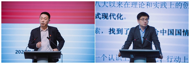 随后,刘江会作主题为《中西比较视域下的中国式现代化道路的创造性》党的二十大报告专题党课。刘江会在党课中谈到,中国式现代化是中国共产党长期探索找到的一条实现中华民族伟大复兴的正确道路,与选择“西方化”作为现代化道路的多数发展中国家相比,中国式现代化从一开始就把实现“共同富裕”作为矢志不渝的奋斗目标。这是中国式现代化进程中没有像其他发展中国家陷入“中等收入陷阱”的根本原因。同时,中国式现代化是走和平发展道路的现代化,创造了人类文明新形态,可以说中国式现代化道路的成功开创,打破了被很多西方学者视为大国崛起“铁律”的“修昔底德陷阱”,为人类社会走向现代化提供了一种新的选择。