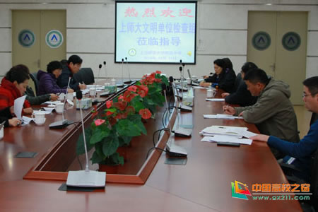 2014年12月11日上午,上海师范大学文明办工作组一行7人莅临上海师范大学附属中学三林校区,指导上海师范大学附属中学“2013—2014年度上海市文明单位”创建工作。校长严一平、校党委书记贺亚丽、副校长傅欣出席会议。