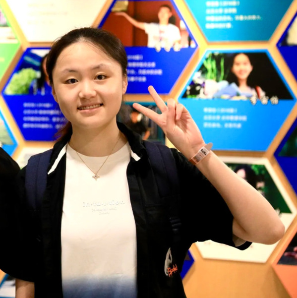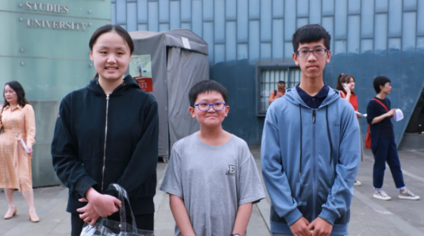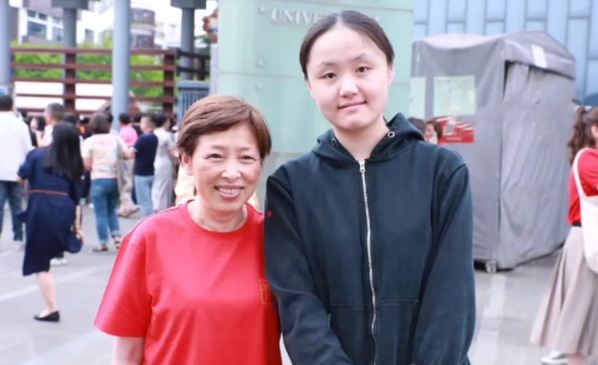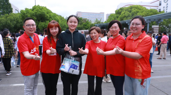 2024年6月7日,高考第一天,上实教师送考团代表与陈如月(左三)在考点门口合影