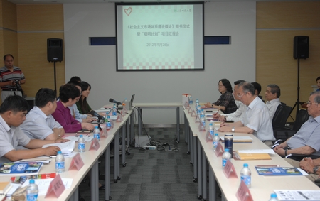 9月26日下午,“《社会主义市场体系建设概论》赠书仪式暨‘曙明计划’项目汇报会”在会议中心举行。上海韩哲一教育扶贫基金会理事成员,韩老家属,上海国际经济贸易研究所主任朱桦,校长、基金会副理事长张民选,校基金会、校团委、审计处、宣传部、财务处等相关部门负责人及第五届广西支教团志愿者出席会议。会议由副校长、基金会副理事长柯勤飞主持。