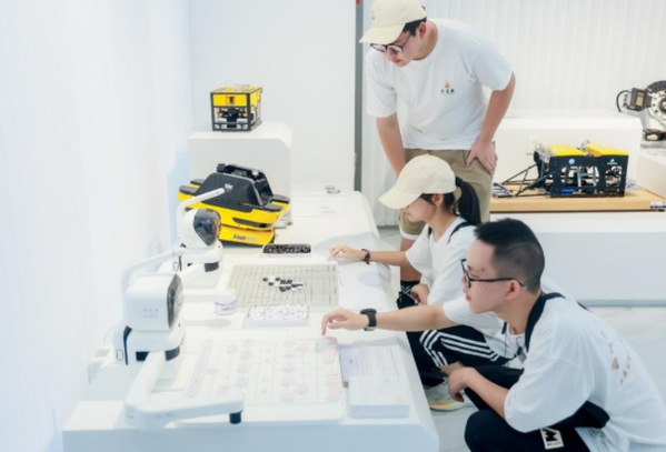 同学们在临港滴水湖AI创新港体验人工智能项目