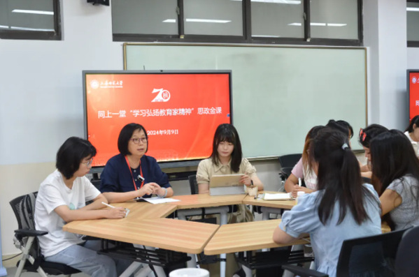 于漪老师认为,这门课的目的,是要让未来的老师了解,教育家精神对中国人塑造精神世界非常重要,是塑造心灵的,因此这门课需要苦心经营。教育家精神承载着中国几千年历史传统师道文化的厚重,放在新时代,它又承载着中国特色社会主义教育创造与活力的特征,两者要结合起来。
