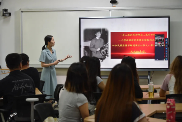 第一讲课堂上,师生们首先一同观看了采访人民教育家于漪老师的专题片。