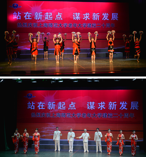 会后,领导与嘉宾一起观赏由上师大老年大学师生编排的“夕阳的天空”文艺汇演。