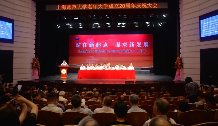 6月11日上午,上海师大老年大学在霞棐剧场举行建校二十周年庆祝大会。上海老干部大学校长罗世谦,上海市教卫工作党委副书记成旦红,上海老年大学老校长郑令德,上海师大党委书记滕建勇、副校长刘晓敏,上海老年教育小组办主任李骏修,中国老年大学协会副会长、上海老年大学协会会长俞恭庆,上海市成人教育协会副会长、上海开放大学副校长王伯军等领导出席大会。出席大会的还有上海五所市级老年大学、市教委终身教育处、高校老年大学、徐汇区教育局的领导以及专程前来的日本友人。中国老年大学协会发来贺信,全国20多所高校老年大学发来贺信和贺电。上海师大党委书记滕建勇、校长朱自强为老年大学题词。庆祝大会由老年大学第一副校长黄刚主持。