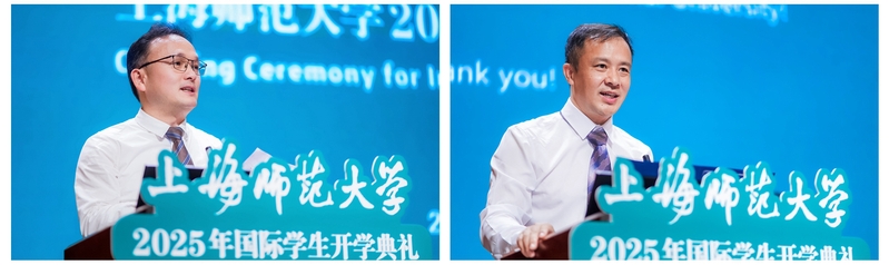 蒋明军向全球国际新生致以热烈欢迎与殷切期许,话语聚焦学子成长,引发全场共鸣。他首先介绍了本学期国际学生整体规模与新生结构:共有 800余名国际学生完成注册,其中新生有400余名,涵盖博士生10名、硕士生23名、本科生56名、交换生34名、预科生122名及语言生、进修生等100余名,分布在徐汇、奉贤两校区的16个学院学习,充分体现学校来华留学教育的多元覆盖与广泛吸引力。随后,立足学校国际化人才培养目标,蒋明军向新生分享三个“成长关键词”: