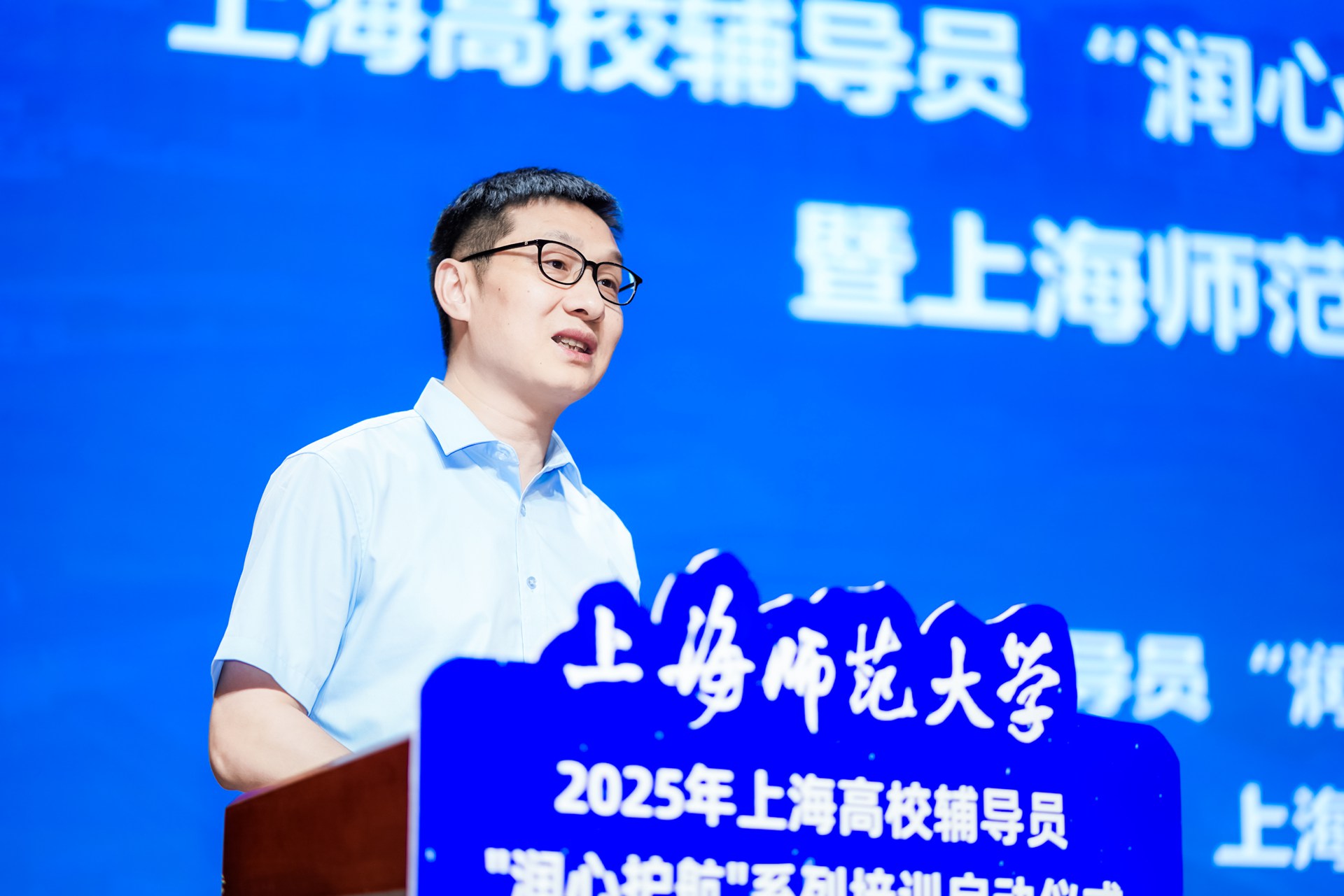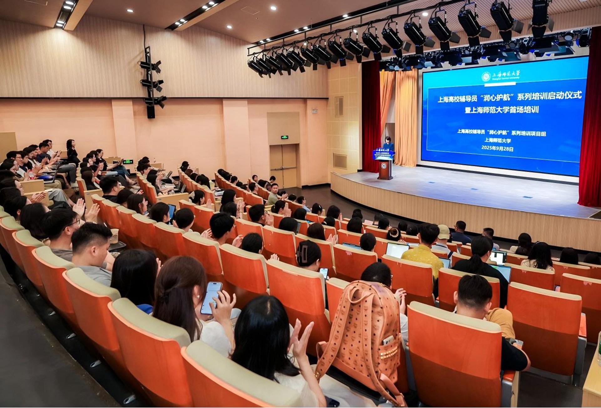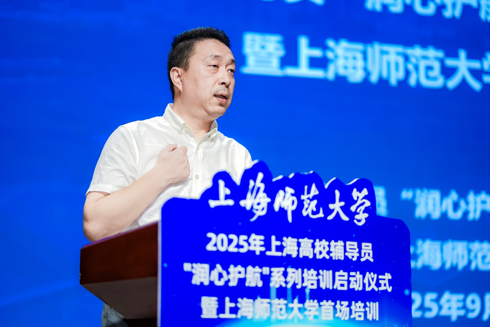 9月28日下午,2025年上海高校辅导员“润心护航”系列培训启动仪式暨首场培训,在我校徐汇校区教苑楼多功能厅顺利举行。校党委副书记、副校长朱惠军,上海市教委德育处有关负责同志,上海市教科院德育发展研究院副院长刘明波出席。复旦大学、上海交通大学、同济大学、华东师范大学等高校的项目组授课专家,以及学校全体副书记、专兼职辅导员、心理中心教师共同参会。活动由校学生工作部(处)部(处)长朱政主持。