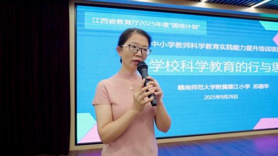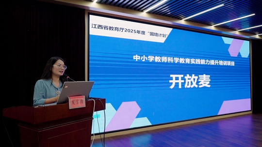 同时,为推动理论与实践的紧密结合,培训项目设置了密集而深入的项目化实践环节。在24日、25日及26日晚间,学员们以小组为单位,围绕“政策引领与资源融合下的科学教育实践创新之路”这一核心主题,在导师指导下进行了深入的课题研讨与方案设计。各小组从四大板块(政策运行机制、地域资源融合、特殊群体教育、技术赋能与学段衔接)中选择课题,将白天所学理论迅速应用于解决真实教育场景中的问题。26日上午举行了由罗晶博士主持的“开放麦”环节,在此环节中多位学员走上讲台,分享了各自学校在科学教育领域的特色成果与实践案例。一个个鲜活的“江西案例”引发了现场的热烈讨论与共鸣。这一环节不仅是一次中期汇报,更成为了一场汇聚全省科学教育智慧的“思想集市”,充分展现了江西省一线教师的实践智慧与创新活力。