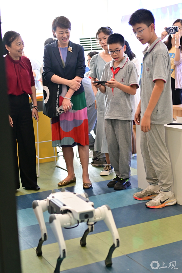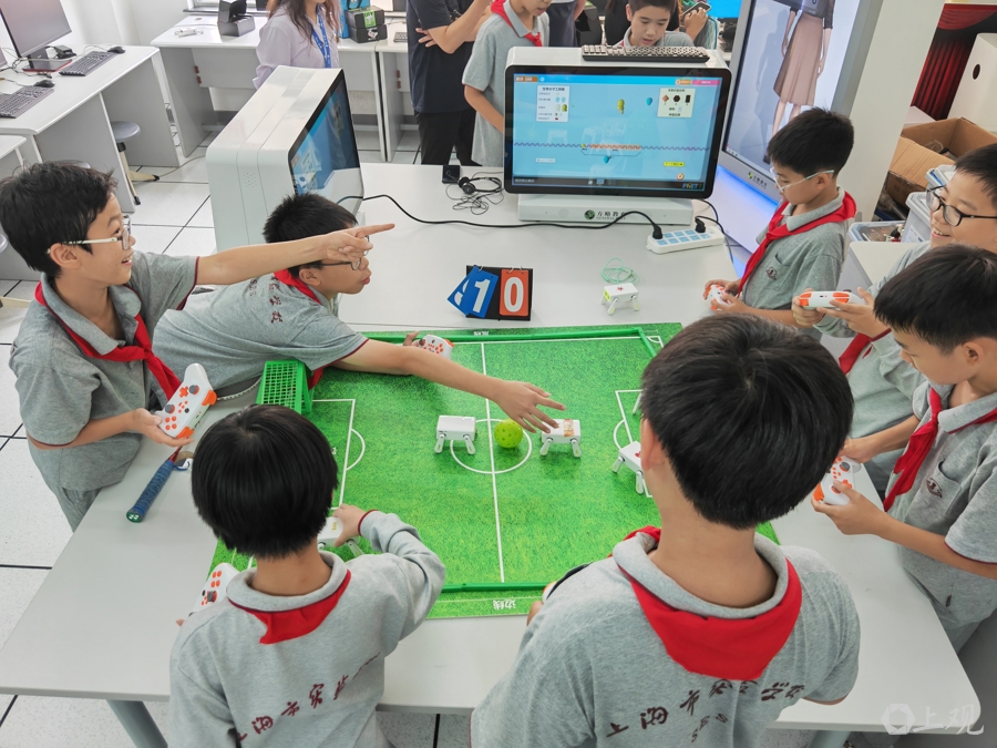 在全栈国产化人工智能实验室,人形机器人戴着红领巾,学生们在图像识别、自然语言处理及机器人控制等领域动手实践。其间,人工智能数智学伴大模型上线演示,师生都有了数字人和智能体的“分身”。王龚教授透露:“学伴大模型将重构学习体验,为学生提供‘同龄伙伴’一般的讨论环境;而即将面世的数字教师大模型,将真正实现大规模因材施教。”