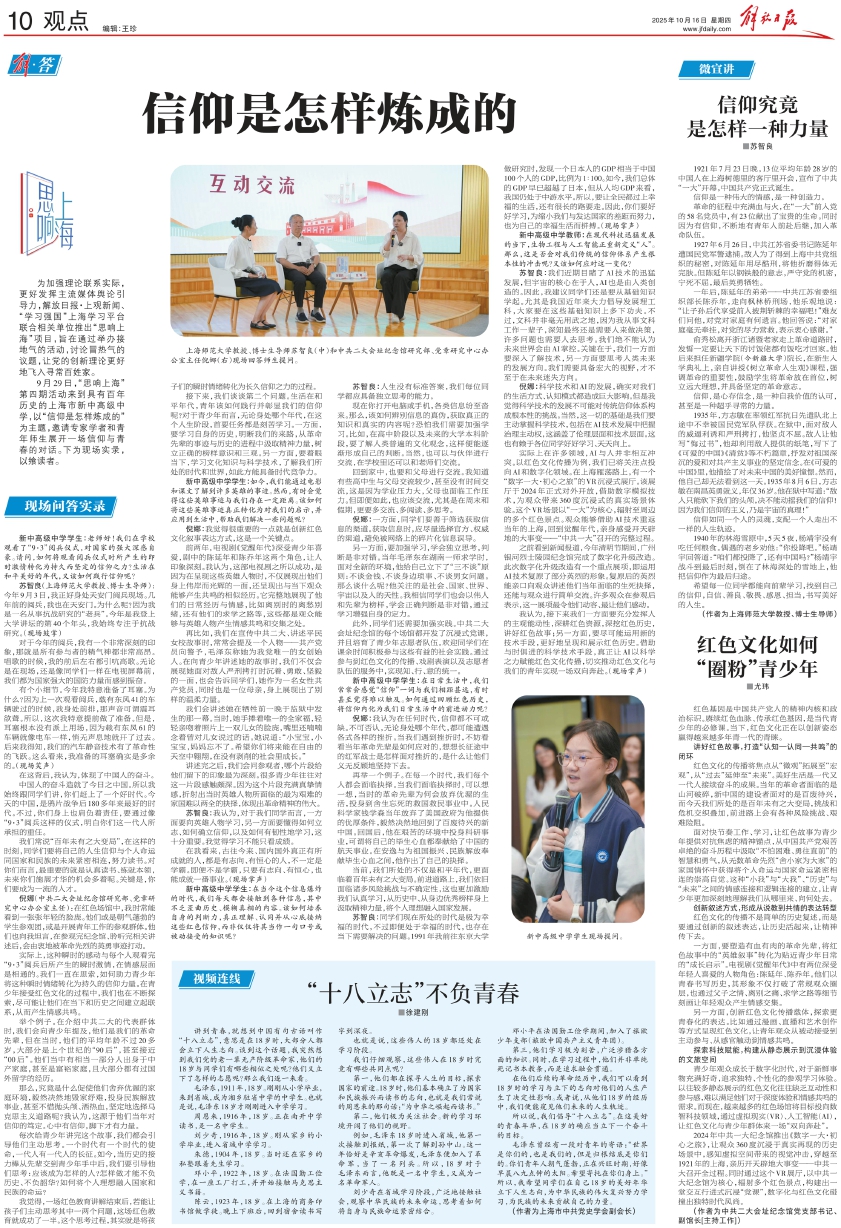 新中高级中学学生:在当今这个信息爆炸的时代,我们每天都会接触到各种信息,其中不乏歪曲历史、模糊真相的内容。该如何培养自身的判断力,真正理解、认同并从心底接纳这些红色信仰,而非仅仅将其当作一句口号或被动接受的知识呢?