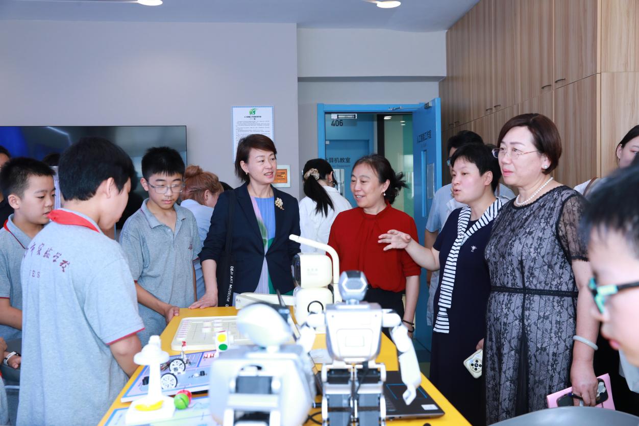 仪式结束后,与会嘉宾共同参观了“全栈国产化人工智能实验室”。上海市实验学校信息中心负责人马颖莹介绍了人工智能教学案例和学生学习成果,展示了学生在图像识别、自然语言处理及机器人控制等领域的实践成果,展现了国产AI教育平台在教学实践中的卓越表现。