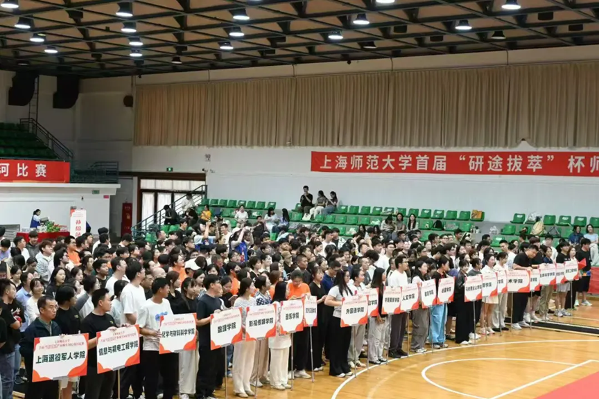 10月17日,上海师范大学首届“研途拔萃”杯师生同心拔河比赛在上海师范大学徐汇校区西部球类馆顺利举行。本次比赛由研究生院、研工部、校团委与体育学院联合指导,校研究生会精心筹备组织,共有21支代表队、300余名师生运动员参赛,每支队伍分别由各学院的研究生导师、辅导员、教务员及研究生同学共同组成。
