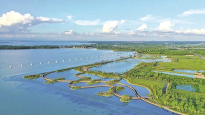 立足优质生态资源禀赋,青浦区正瞄准世界级著名湖区目标不断发力。不论是有着茫茫芦荡、千亩荷塘,水面浮生着野菱角、水芹等植物的淀山湖,还是白鹭、斑嘴鸭、须浮鸥时常从“水上森林”池杉林上凌空而过的青西郊野公园大莲湖,抑或是小桥流水、游人如织的朱家角古镇水域,都赋予了青浦发展更多的想象空间。绿色是青浦发展的底色,随着湖区景观愈发秀美、功能稳步提升,一大批龙头企业先后落户青浦,“好风景”正不断引来“新经济”。