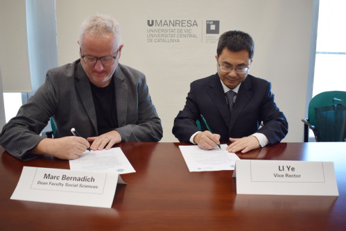 在此次出访过程中,代表团一行还访问了西班牙维克-加泰罗尼亚中央大学,与该校副校长Carlota Riera以及相关人员进行了会面,双方各自介绍了学校办学情况和办学特色,围绕教师交流及培训项目进行了深入沟通,就如何开展和落实具体合作达成意向,并签署了会议纪要。