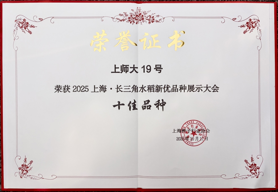 今年10月中旬,在2025上海・长三角水稻新优品种展示大会暨种业高质量发展研讨会上,“上师大19号”经专家组严格的田间考察、品质检测与综合评审,最终被评为2025长三角水稻新优十佳品种。