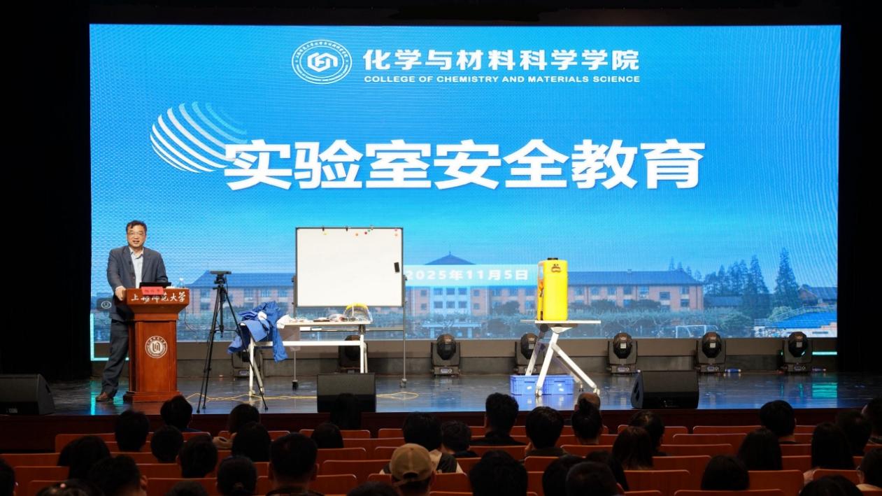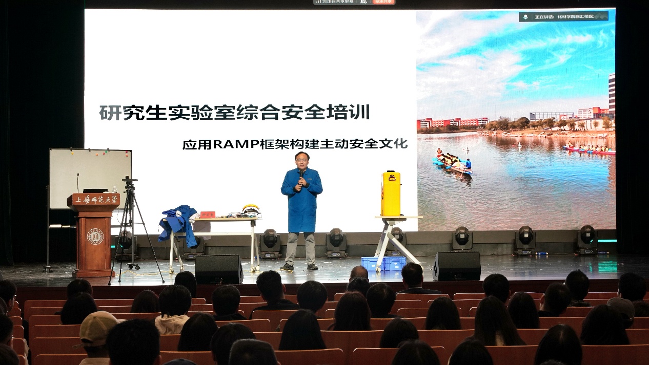 为全面加强研究生实验室安全意识、规范实验操作行为,11月5日,化学与材料科学学院举办研究生实验室安全教育专题培训会,在徐汇校区音乐厅设主会场,同步在奉贤校区图文二报设分会场并进行现场直播。会议特邀华东理工大学反应安全中心成员、校实验室与装备处副处长徐宏勇老师作专题讲座。学院党委书记叶蔚蓝、院长杨仕平、党委副书记卢丹凤、副院长刘国华出席,2024级、2025级全体硕士及博士研究生参加。