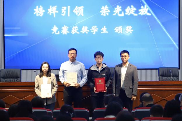 荣誉是奋斗的见证,榜样是前行的指引。学院近期取得了令人瞩目的可喜成绩,学生团队分别在2025年中国青年科技创新“揭榜挂帅”擂台赛中荣获一、二等奖,研究生团队在2025年“田家炳”杯教学技能大赛也获得了一、二等奖的优秀成绩。学院党委书记唐洁为2025年“田家炳”杯教学技能大赛的优秀指导教师王蓉华、丁玮颁发荣誉证书并表示祝贺;研究生工作部部长韩刚为大赛获奖学生代表叶再俊、陈嘉琪、蔡莹和李禹澄颁发荣誉证书并表示祝贺。
