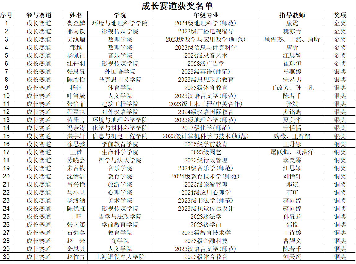 成长赛道组评选出金奖6人,银奖9人,铜奖15人。