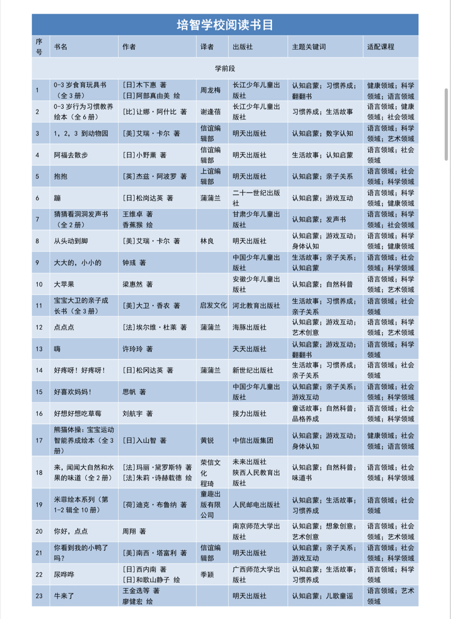 培智学校阅读书目(部分)